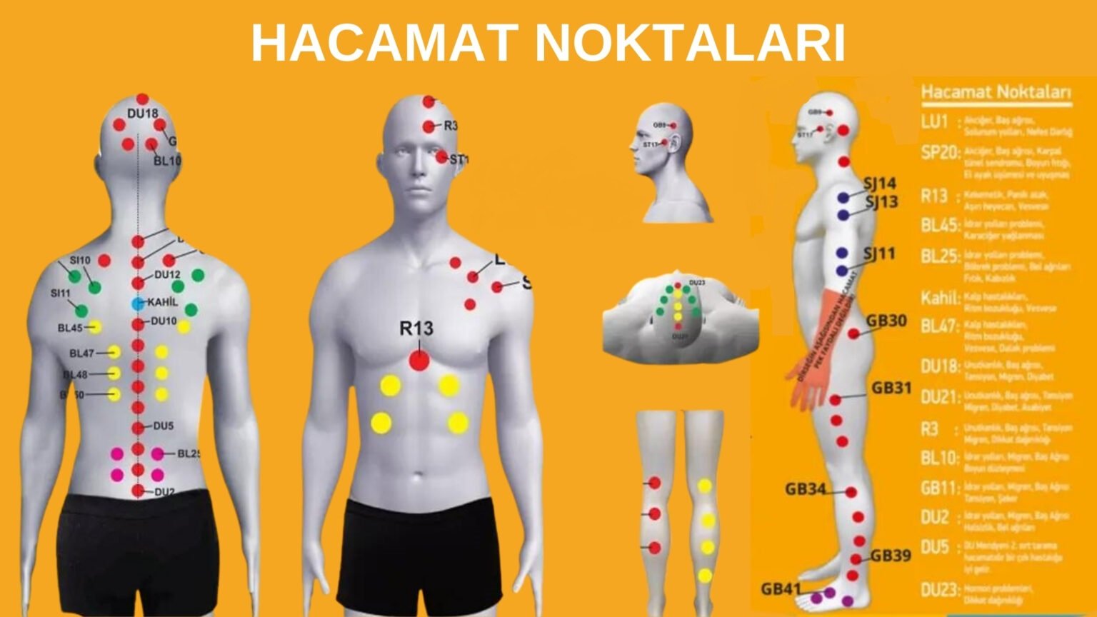 Hastalıklara göre hacamat bölgeleri ve bu bölgelerde görülen hacamat faydaları ise şöyledir: